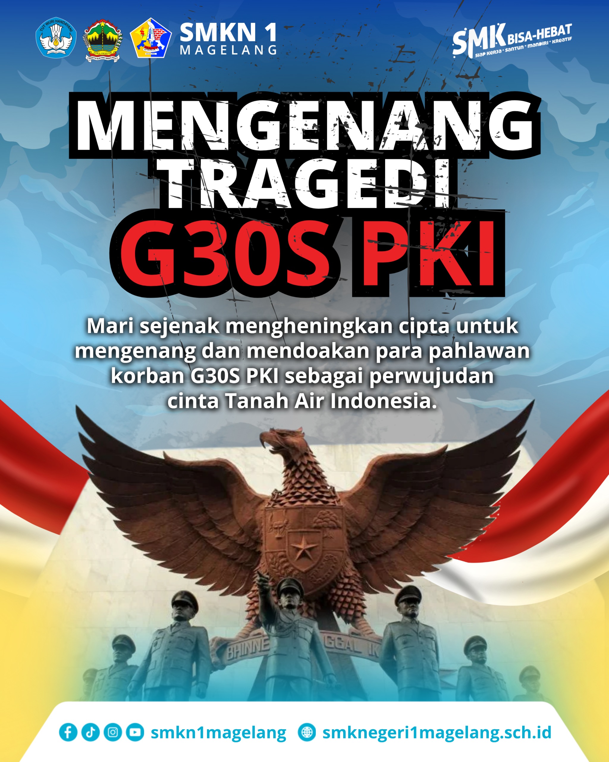 Magelang, 30 September 2025 – SMK Negeri 1 Magelang melaksanakan kegiatan peringatan untuk mengenang tragedi G30S PKI, sebuah peristiwa kelam dalam sejarah bangsa Indonesia. Momentum ini menjadi pengingat betapa mahalnya harga yang harus dibayar untuk mempertahankan kedaulatan negara dan menjaga persatuan bangsa.